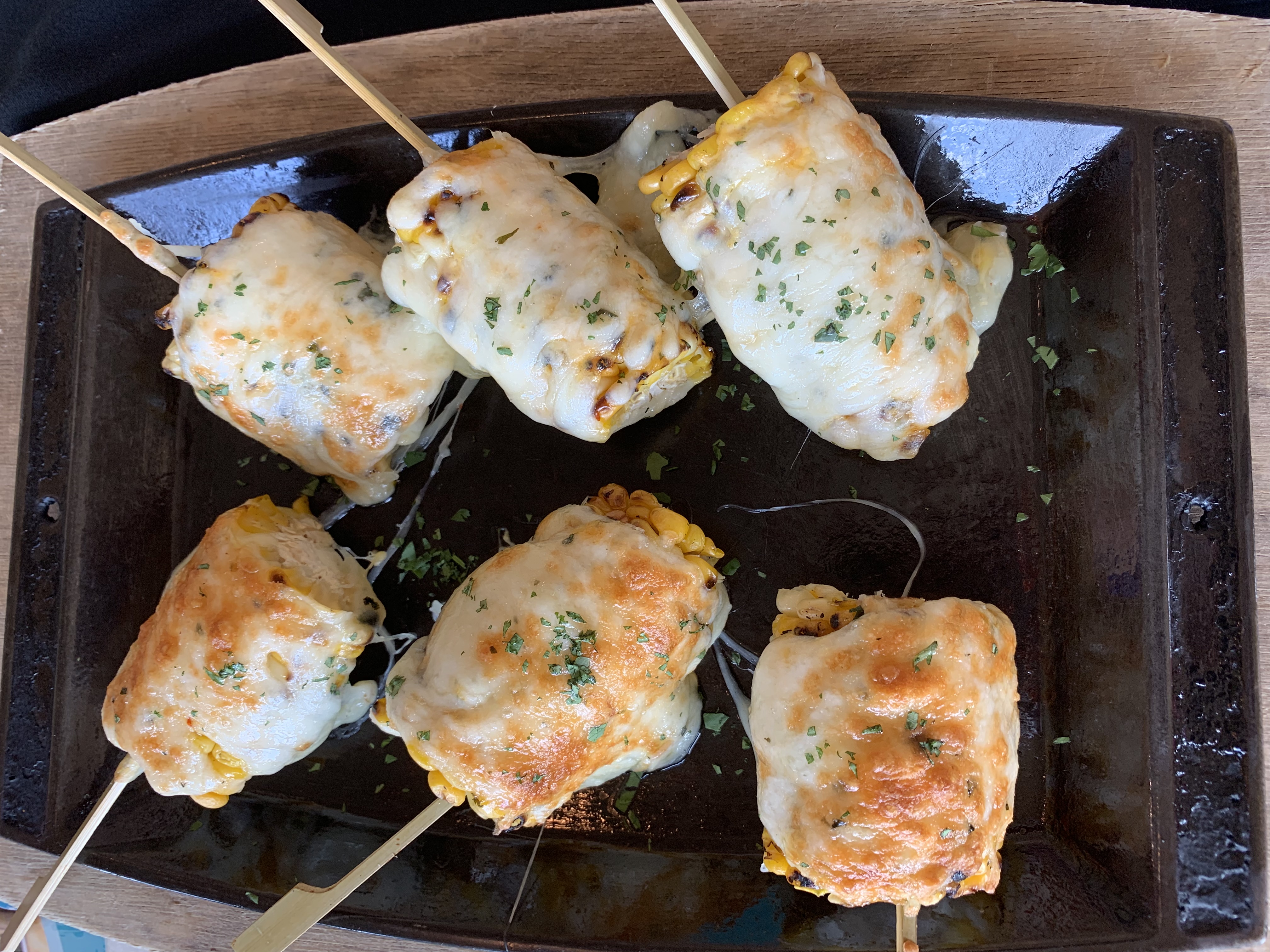 Then we tried the South American Crazy Corn. It’s fire roasted corn on the cob with aji amarillo and P37 cheese. It’s gluten free and delicious. I wondered how I would gracefully eat this and surprisingly enough it was very easy to hold onto the skewer and cut the corn off the cob with my knife. #CrisisAverted