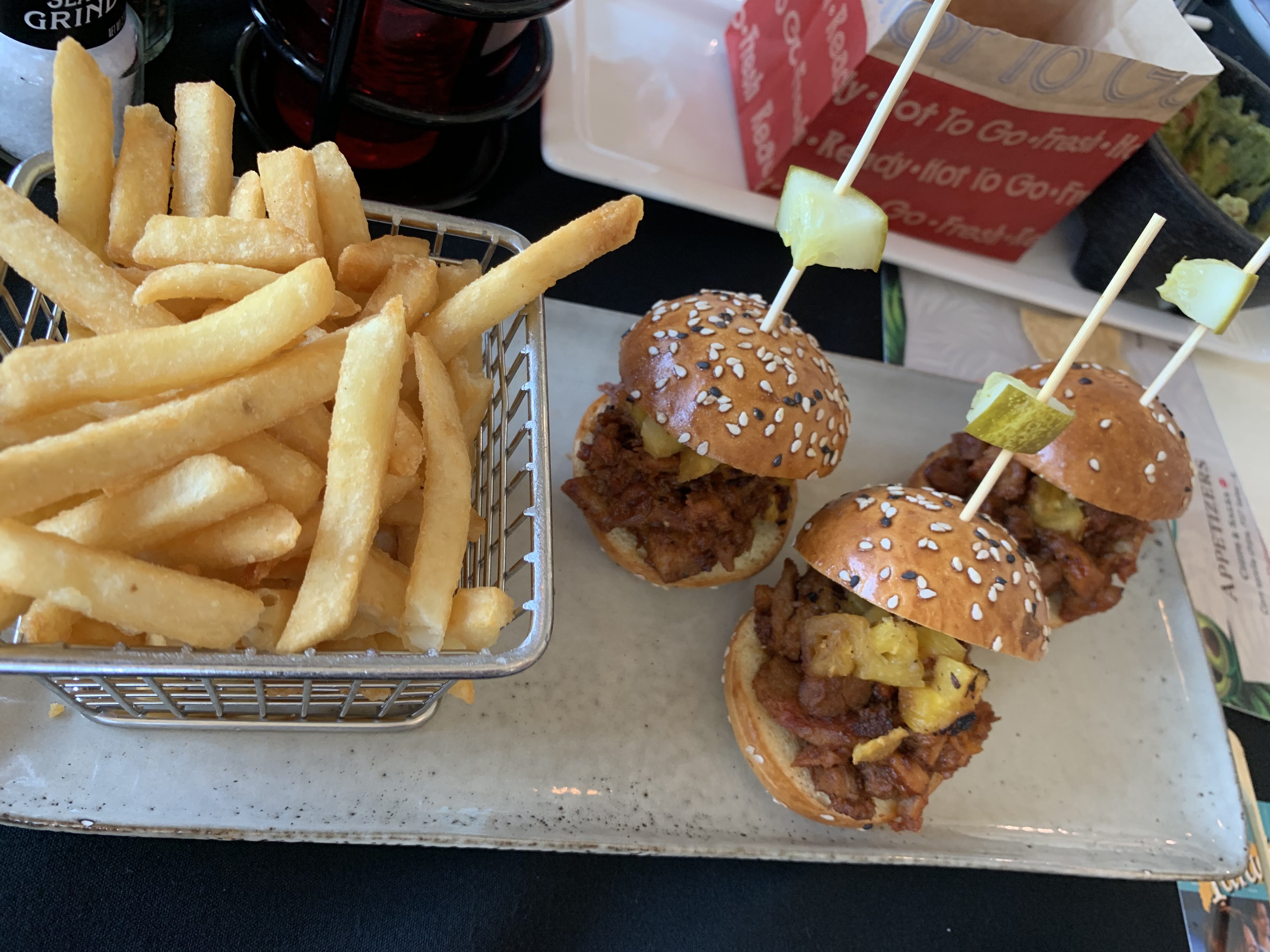 Up next was my favorite item on the the menu the 3 Lil Pig Sliders featuring slow roasted pork, grilled pineapple, and whiskey BBQ sauce. It was served with a side of fries. The fries were extra crispy golden and delicious as well! I will definitely be back for this on a regular basis.