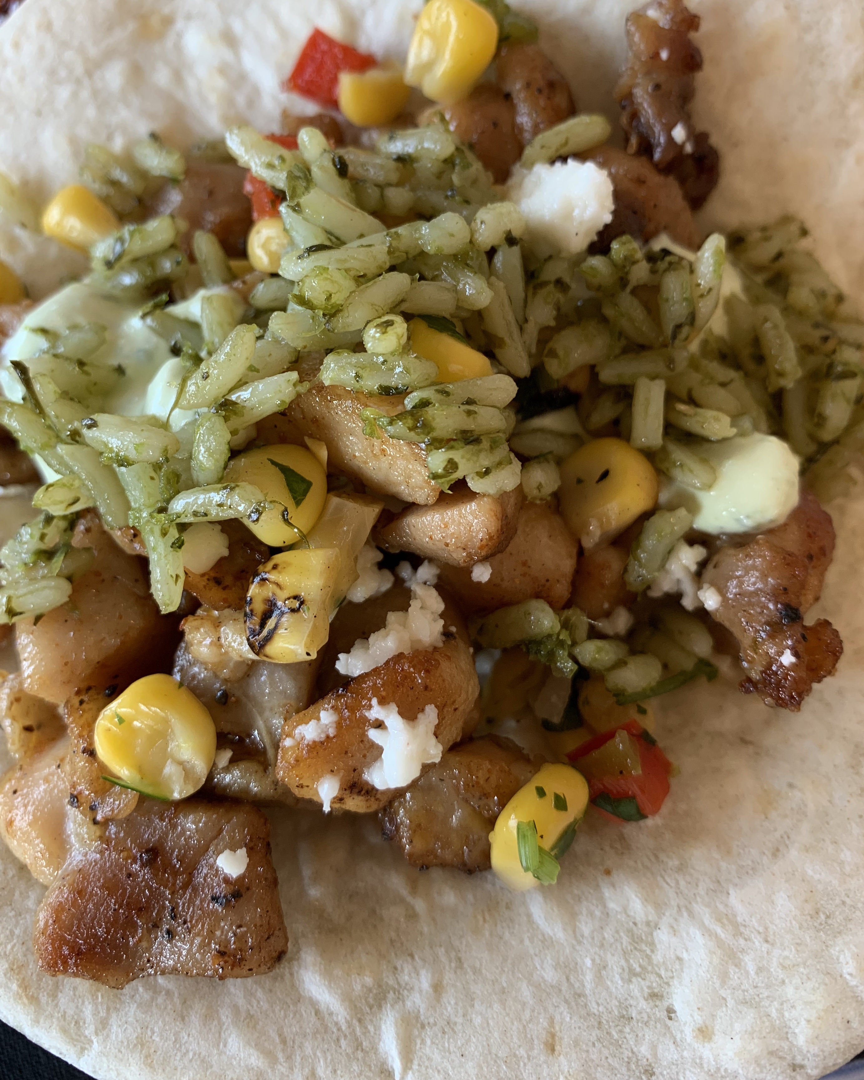 We tried two of their taco options. This is the Brasas Chicken with grilled chicken, salsa, and roast corn pico, queso blanco, chipotle crema, and cilantro.