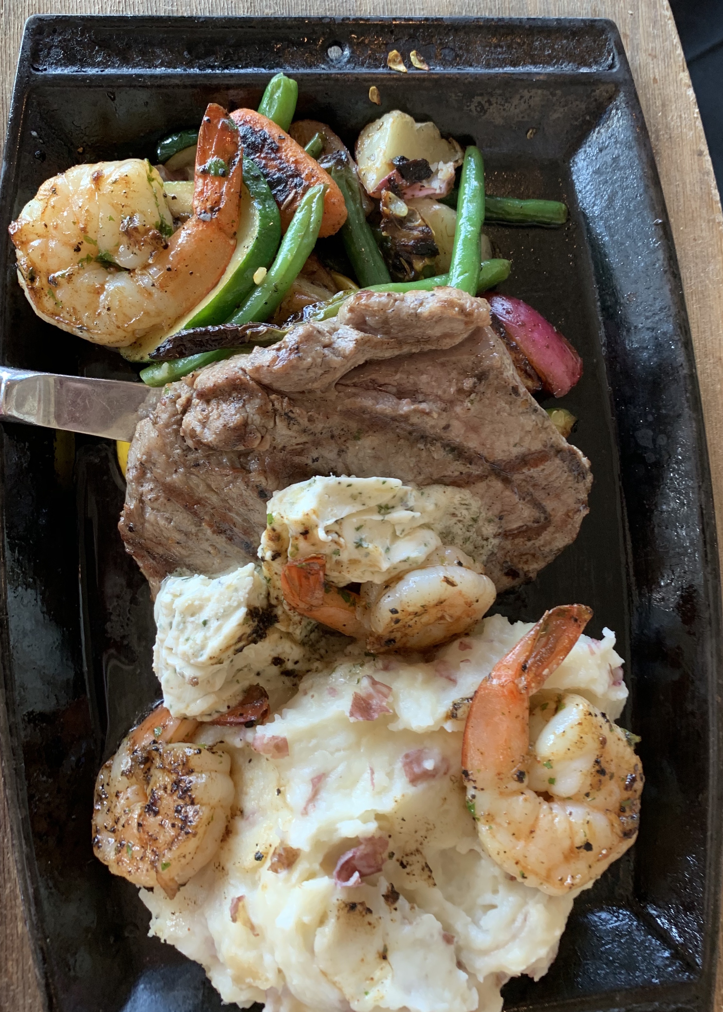 Garlic Butter Steak & Shrimp is Paradiso 37 ‘s surf and turf option and it’s incredible. It’s paired with roasted veggies and mashed potatoes.