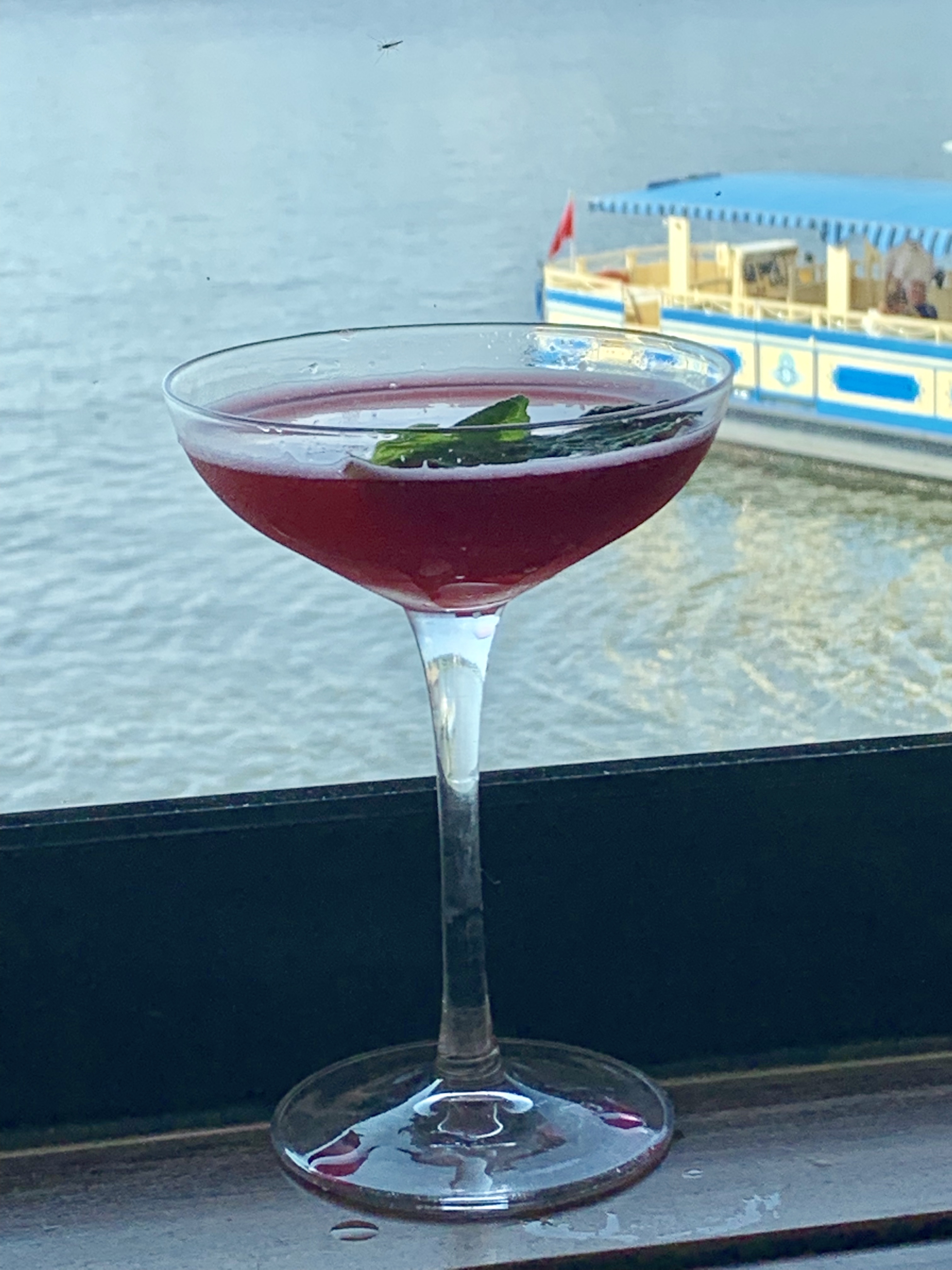 This is their Winter in Paradise Specialty Cocktail. It starts with House infused Hibiscus Stoli Vodka, Watermelon purée, fresh lime juice, and finishes with agave nectar.